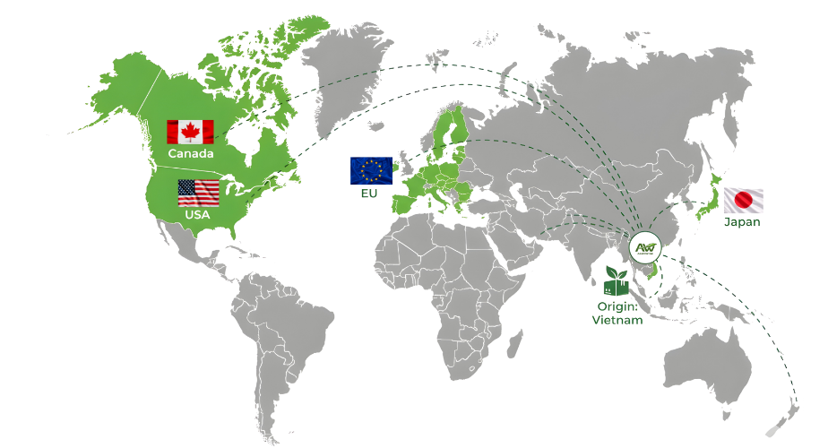 We are proud to bring Vietnamese agricultural products to international customers across the USA, Canada, the EU, and Japan through reliable sourcing and export-ready quality control.